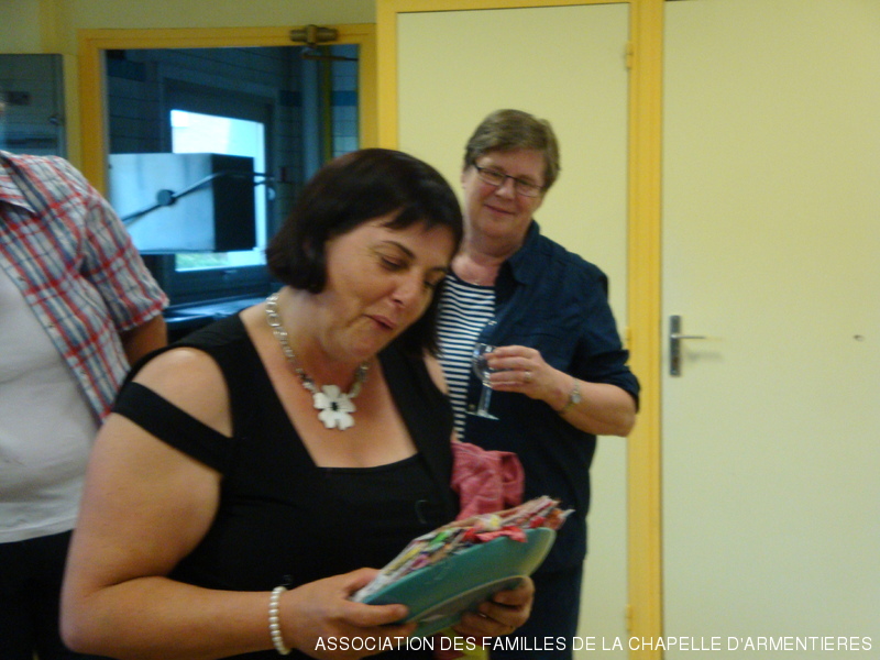 Sophie, animatrice du groupe de Nieppe, quittera prochainement la région et s'est vu offrir un grand nombre de carrés réalisés à son intention et portant la signature brodée de chaque patcheuse. A elle de réaliser un top, souvenir de ses amies du Nord...