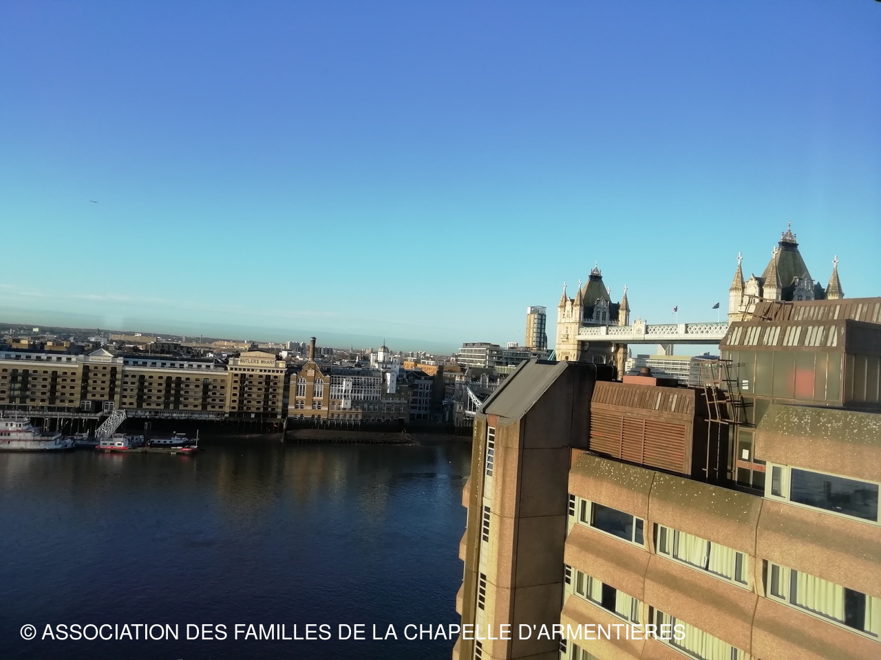 Quelques soucis pour trouver un lieu de stationnement et finalement nous avons eu la bonne surprise de rejoindre notre hôtel sur le bord de la Tamise à deux pas du Tower Bridge !!!